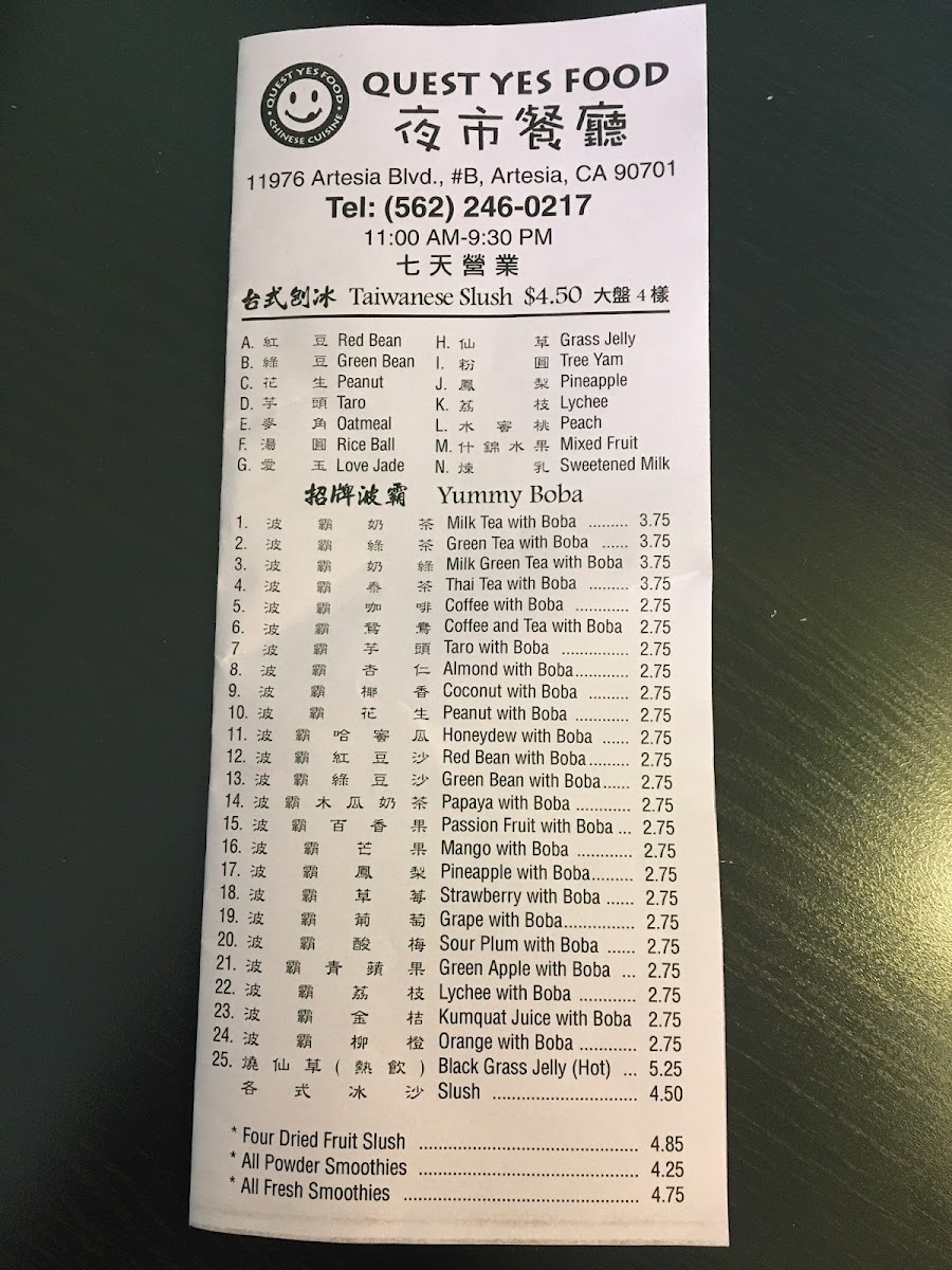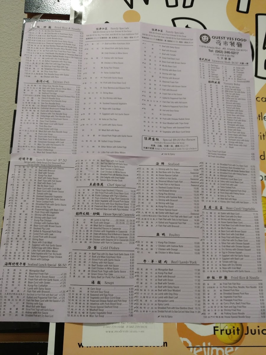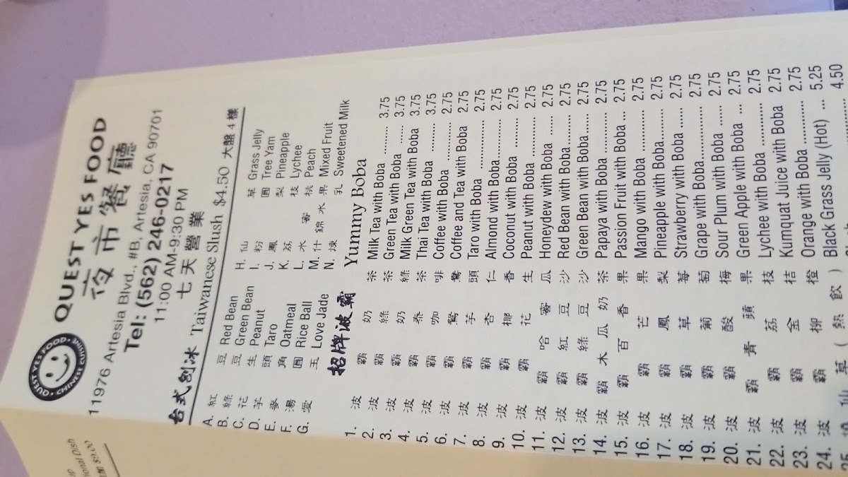 Welcome to Quest Cafe, nestled in the heart of Artesia, California, where culinary adventures await at every visit. Our menu, crafted with passion and authenticity, beckons diners to explore a world of bold flavors and unique dishes. Start your journey with our famed Fried Stinky Tofu with Pickle Vegetables, a delightful introduction to our daring offerings. Indulge in the spicy and savory notes of our Kung Pao Chicken or the aromatic Sour Bamboo and Stewed Pork. Dive into Taiwanese delicacies like 台式雞捲 or enjoy a classic with our Salted Crispy Chicken. From the savory Japchae to the intriguing mix of Little Fish with Bitter Melon, there's a dish to satisfy every palate. Don't miss the comforting warmth of our Hot and Sour Soup or the hearty Cured Pork with Leek and Broccoli. Whether you're craving the succulence of Braised Tofu or the rich taste of an Oyster Omelette, Quest Cafe promises a dining experience like no other. Visit us at 11976 Artesia Blvd, Artesia, CA, and discover why our specialties are a must-try for food lovers everywhere.
